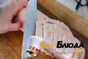 1. Свиную грудинку промыть под проточной холодной водой, обтереть досуха бумажными полотенцами, а затем ножом нанести на кожице насечки, прорезая слой сала, но, не доходя до слоя мяса.
