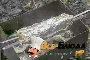 6. Уложить грудинку в фольге над хорошо прогоревшими углями в мангале и жарить 10 минут сначала с одной стороны, затем перевернуть и продолжить готовить 10 минут с другой стороны. Повторить то же самое еще раз.