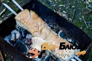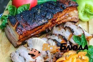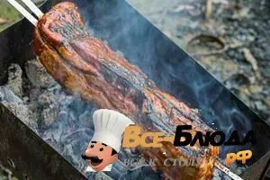 Как приготовить "Свиная грудинка, запеченная целым куском на шампурах"