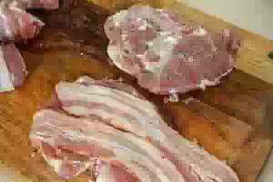 1. Свиную шейку или корейку нарезать ломтиками толщиной 1-1.5 см.
