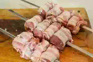 Как приготовить "Шашлык из мясных рулетиков с беконом"