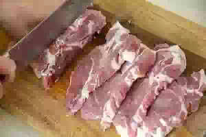 1. Свиную шейку или корейку нарезать ломтиками толщиной 1-1.5 см.