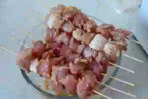 Мясо на шпажках в духовке, запеченное в рукаве