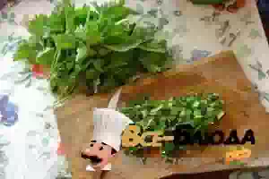8. Перед подачей на стол посолить и посыпать зеленью кинзы (или подать ее отдельно).