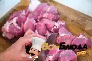 1. Свинину без косточки, с прожилками жира нарезать крупными кусками примерно одного размера.