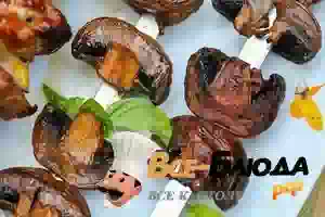 5. Запекать над подготовленными углями примерно по 5 минут с каждой стороны. Во время готовки грибы можно смазывать маринадом, оставшимся в контейнере. Готовый шашлык из шампиньонов подавать сразу, пока грибы горячие. Хотя и в холодном виде они вполне подойдут для закуски или как один из ингредиентов в салат.