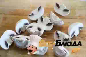 2. Грибы протереть влажной салфеткой. Ножки желательно максимально обрезать. Каждую шляпку порезать вертикально