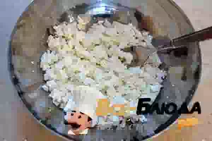 1. Сухой, рассыпчатый творог хорошо размять вилкой.