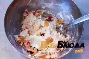 6. Аккуратно примешиваем кусочки мармелада к творогу. Тесто для сырников готово.