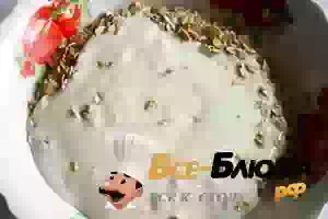 5. В миску с творогом положите набухшую овсянку.