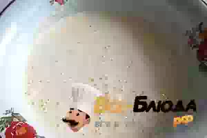 4. С помощью венчика или миксера взбивайте массу до тех пор, пока она не загустеет и не побелеет.