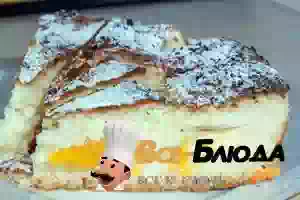 8. Разложить на творог половинки абрикосов и накрыть оставшимся творогом. Выпекать в прогретой до 180С духовке около часа. Как обычно, проверить готовность пирога деревянной лучиной: после извлечения из пирога она должна оставаться сухой.