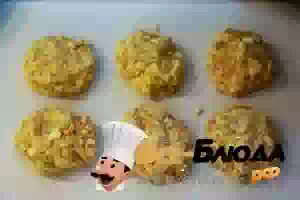 7. На плоскую рабочую поверхность высыпать манку. Из творожной массы сформировать мокрыми руками творожные колобки. Для более равномерного размера массу можно забирать влажной столовой ложкой с горкой. После этого колобки обвалять в манке и слегка сплюснуть, чтобы получить классически сырники.