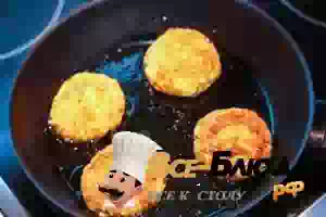 8. На горячую сковородку налить растительное масло. На медленном огне (у меня 4 из 10) жарить сырники несколько минут с одно стороны, затем перевернуть и жарить до готовности. Не забывайте контролировать зажаристость морковных сырников на манке, посматривая, не подгорели ли. Готовые сырники с морковью подавать со сметаной к горячему чаю.
