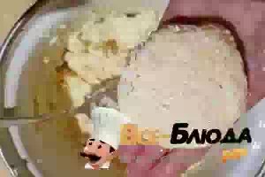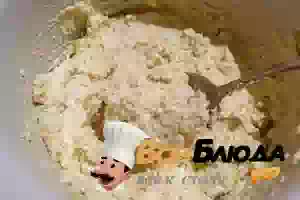 5. Примешать просеянную муку, чтобы получилось однородное творожное тесто.