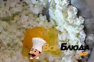 3. Насыпать в творог сахар и соль.