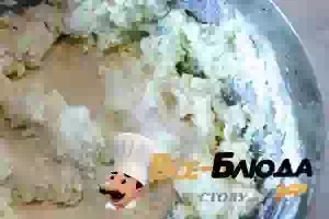 1. Вилкой или погружным блендером размять в миске сухой, крупитчатый творог.