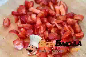 5. Клубнику порезать 4-6 частей в зависимости от размера ягод. Если ягоды водянистые, то перед добавлением в творожное тесто надо присыпать её крахмалом