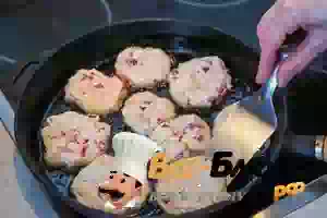 8. На горячую сковородку налить растительное масло. На небольшом огне жарить сырники несколько минут с одно стороны, затем перевернуть и жарить до готовности. Не забывайте контролировать забористость сырников, посматривая, не подгорели ли. Готовые сырники на манке с клубникой подавать со сметаной к горячему чаю.