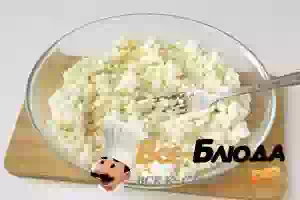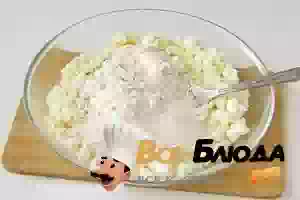 5. Тщательно перемешайте. Если масса жидковата, добавьте 1 столовую ложку муки.