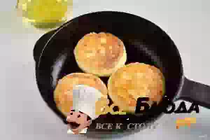 6. На горячую сковороду, смазанную маслом, выкладываем сырники и жарим до корочки. Огонь должен быть средний, переворачивайте сырники, жарьте. Сырники готовы.