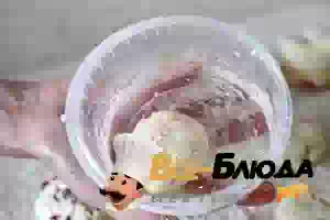 8. Затем можно либо руками придать кусочку творожного теста округлую форму, либо взять любую посудину наподобие миски-пиалы, насыпать в неё примерно 1/2 ст.л. муки, положить кусочек теста и начать вращать миску в руке, чтобы сырник катался по дну. Тем самым приобретая форму гладенького колобка, как на фото. Остаётся только слегка приплюснуть это колобок