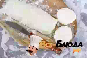 4. Отрезая ножом части колбаски, сформируйте заготовки сырников, толщиной не менее 2 см. Обваляйте их со всех сторон в муке.