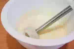 2. Чтобы избавиться от комочков, смешать ингредиенты погружным блендером на низкой скорости.