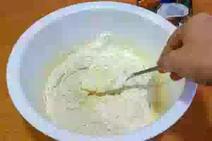 3. Добавить в творожную смесь муку, затем - ванильный сахар