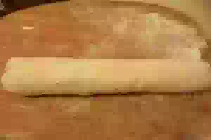 4. Нарезать колбаску из теста кусочками шириной около 2 см.