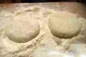 3. Тесто разделить на 2 части. Из каждой части скатать колбаску.