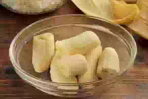 3. Два крупных и спелых банана очищаем.