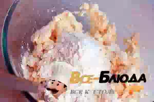 1. Яйца растереть с сахаром и щепоткой соли. Добавить муку и размешать.