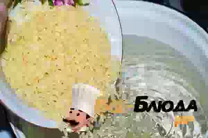 1. Вскипятить воду и всыпать пропаренный рис. Варить при умеренном кипении 5 минут. Добавить соль.