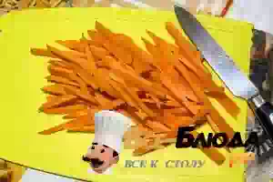 1. Репчатый лук мелко порезать. Морковь очистить и нарезать соломкой.