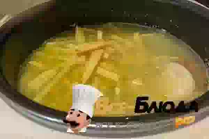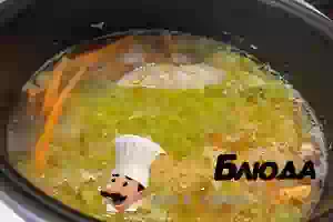 6. После закипания бульона с рыбой засыпать промытое пшено.