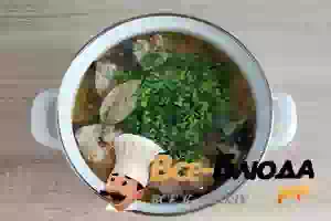 16. Добавьте в уху зелень, а также чёрный молотый перец и лавровый лист.