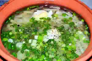 4. Дальше все как в рецепте - отварила сельдерей в рыбном бульоне до готовности, добавила обжаренную муку, желтки и лимонный сок, немного. От себя добавила немного зеленого лука (всегда хорош к ухе). Щедро поперчила. Очень-очень рекомендую.