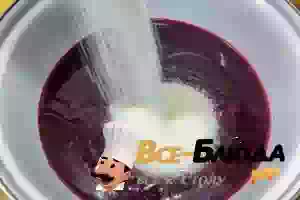 6. Из указанного в рецепте количества винограда получится примерно 500 мл виноградного сока. Возвращаем его в кастрюлю и всыпаем сахар. Тщательно перемешиваем и кипятим на слабом огне 2-4 минуты. Снимаем сверху пенку.