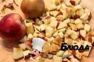 1. Кислые или кисло-сладкие яблоки вымыть, удалить семенную коробочку, нарезать небольшими кубиками. Кожуру с яблок можно не срезать.