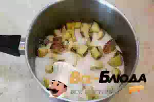 4. Поставить яблоки на слабый огонь, проварить, помешивая, 15 минут после закипания и снять с плиты.