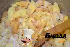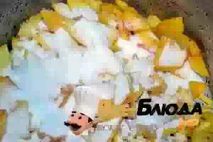 2. Нарезанную дольками айву забрасываем в кастрюлю, засыпаем сахар.