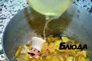 6. Полученный отвар выливаем в кастрюлю к фруктовым ломтикам. Варим айву еще 10 минут. Снимаем кастрюлю с огня и оставляем на 5 часов.