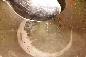 6. Теперь содержимое банки заливаем кипятком и оставляем под закрытой крышкой на 15 минут. По истечении времени сливаем в кастрюлю остывший кипяток из банок.