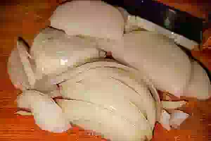 2. Нарезаем полукольцами репчатый лук .