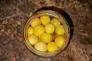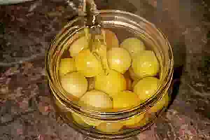 6. Теперь содержимое банки заливаем кипятком и оставляем под закрытой крышкой на 15 минут. По истечении времени сливаем в кастрюлю остывший кипяток из банок.