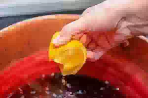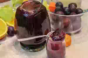 7. и выжать сок из апельсина, который для удобства нарезали дольками. Проварить, помешивая еще примерно 5 минут после закипания. За это время сливовое варенье уже заметно загустеет.