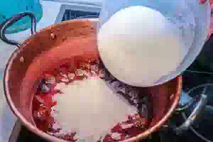 4. Засыпать сахар, размешать и оставить на несколько часов, чтобы сахар растворился. Можно оставить ягоды, засыпанные сахаром, на ночь.