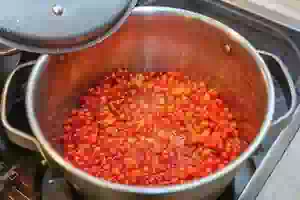 2. Пересыпать калину в кастрюлю, прикрыть плоской крышкой или тарелкой. Поставить кастрюлю на слабый огонь, и дождаться, когда ягоды начнут лопаться. Снять кастрюлю с калиной с плиты.