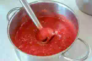 3. Пюрировать клубнику погружным блендером до получения пюре.